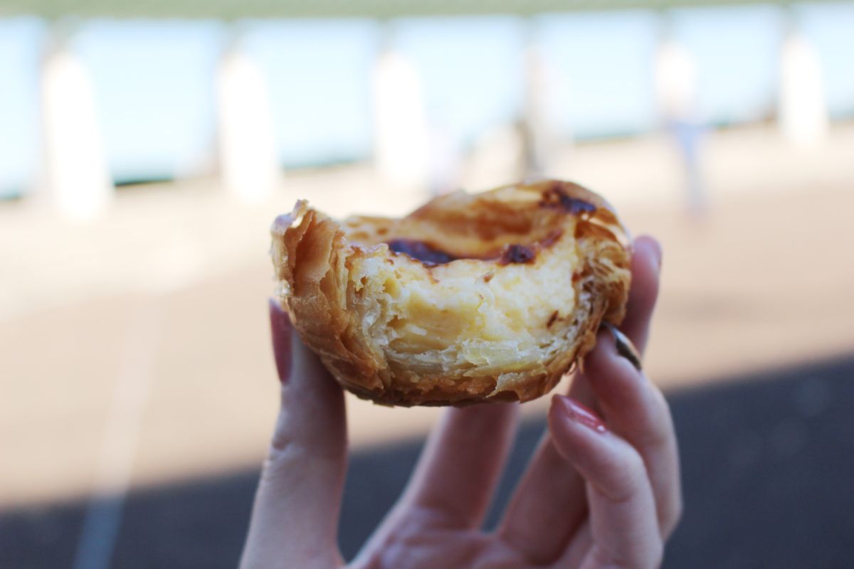 通常パイは横に折られることが多いのですが、こちらのお店のパイは縦に層になっているのだとか。余分な油分が下に流れて揚げ焼きのようになり、噛むとザクザクとした食感が感じられます。まるでプリンのような食感のぷるぷるのカスタードもたまりません!