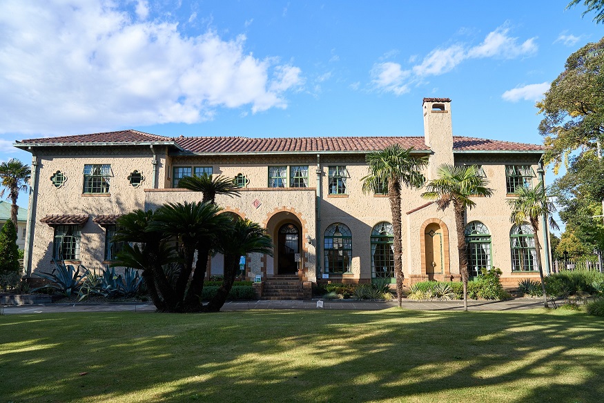 ベーリック・ホールは、イギリス人貿易商B.R.ベリックの邸宅として昭和5年(1930)にJ.H.モーガンの設計により建造された歴史的建造物。スパニッシュスタイルを基調とした意匠で、玄関の3連アーチや外壁の幾何学模様の色タイルなどみどころもたくさんです!
