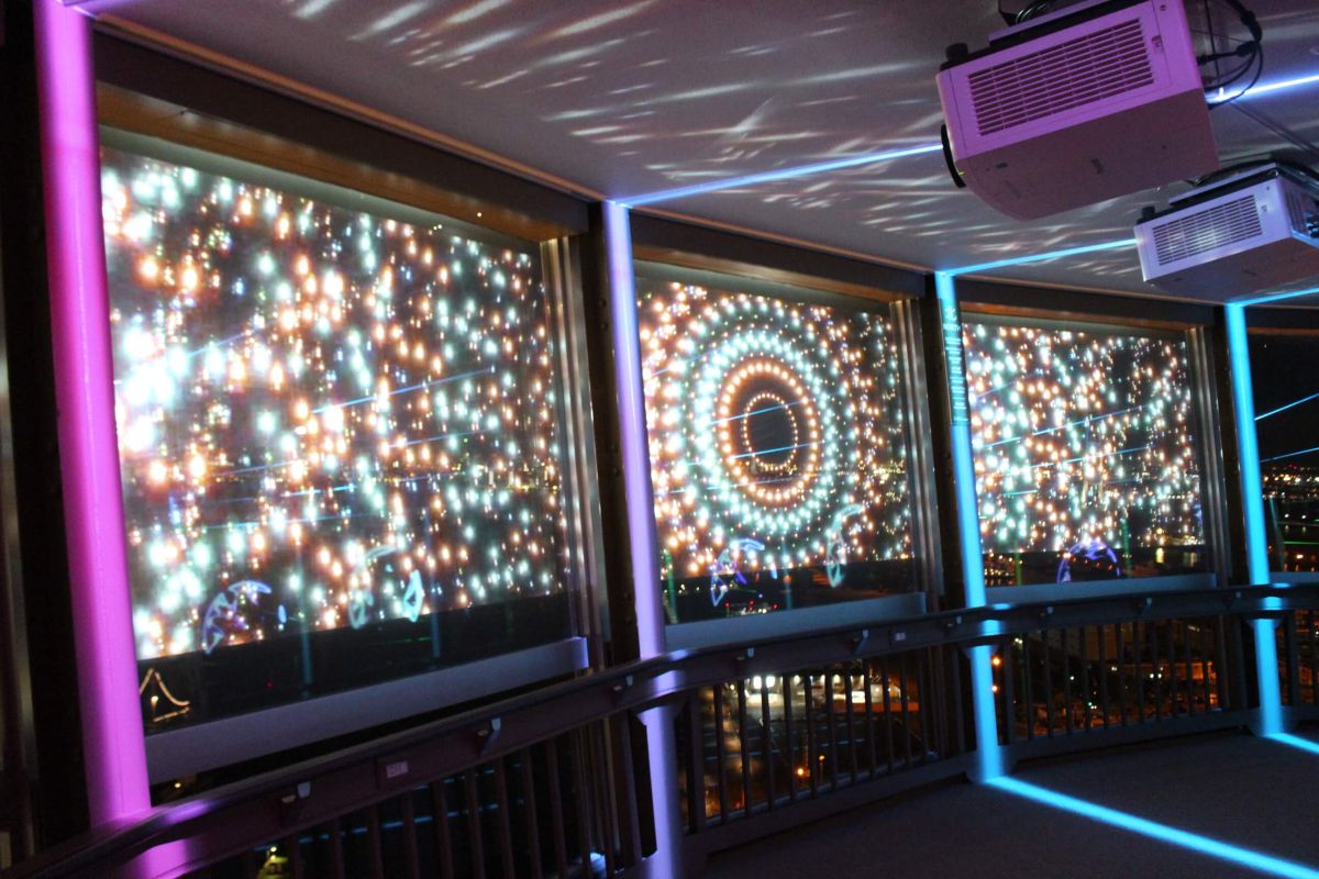展望フロアから階段を上ると、30階はデジタルアートで彩られたメディアアートギャラリーとなっています。カラフルに彩られた世界はフォトジェニック!デジタルアート越しに眺める夜景はまた違った魅力を感じられます。