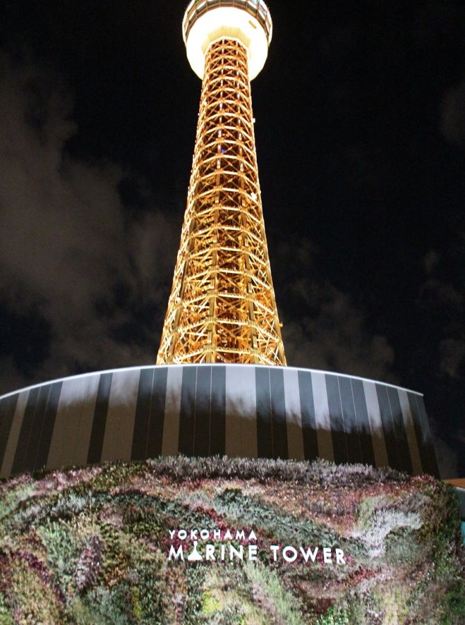陽が落ち空も暗くなってきたら、2022年9月にリニューアルオープンした横浜マリンタワーへ。リニューアルでは「NATURE&FUTURE」をコンセプトに、外観の壁面緑化でNATUREを、展望フロアから見える夜の魅力でFUTUREを表現しています。