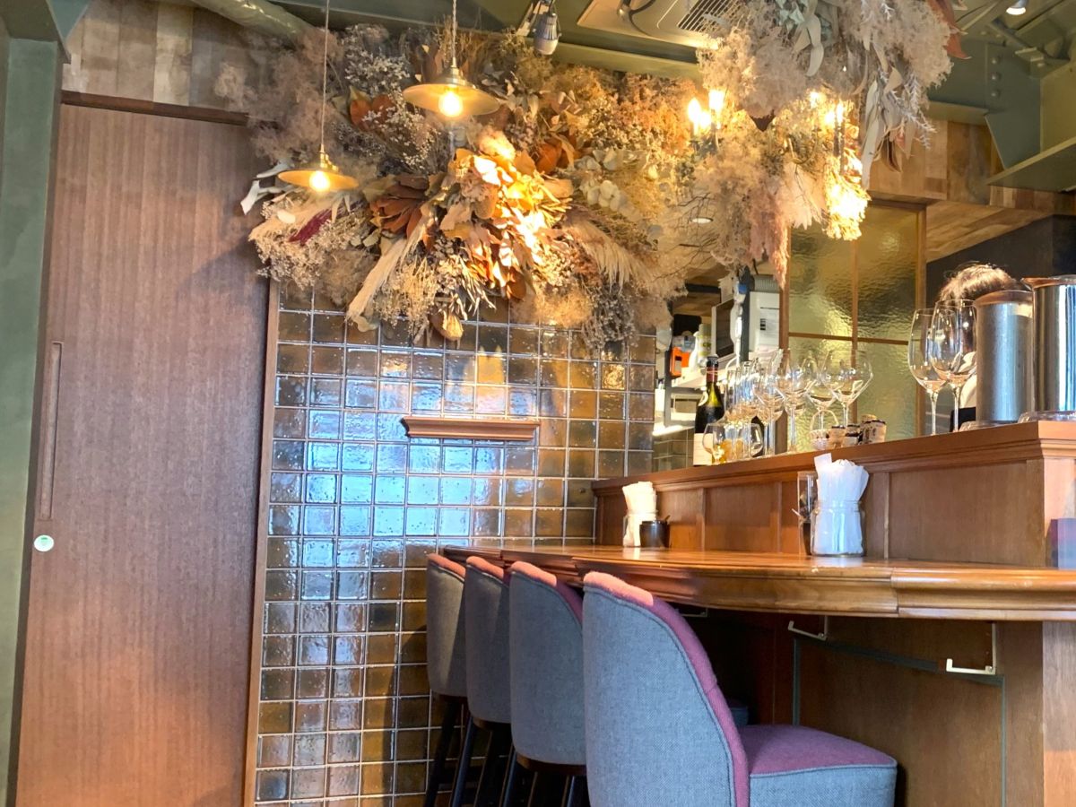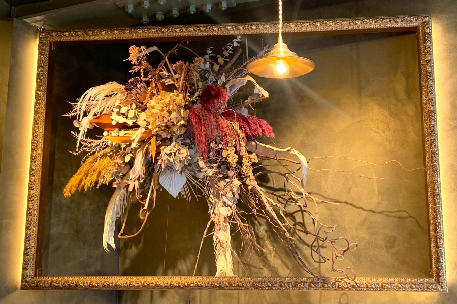 たくさんのドライフラワーがディスプレイされており、おしゃれな空間が広がります。フランス民族音楽のミュゼットが流れていることで、まるでフランスにいるかのような雰囲気も楽しめます。