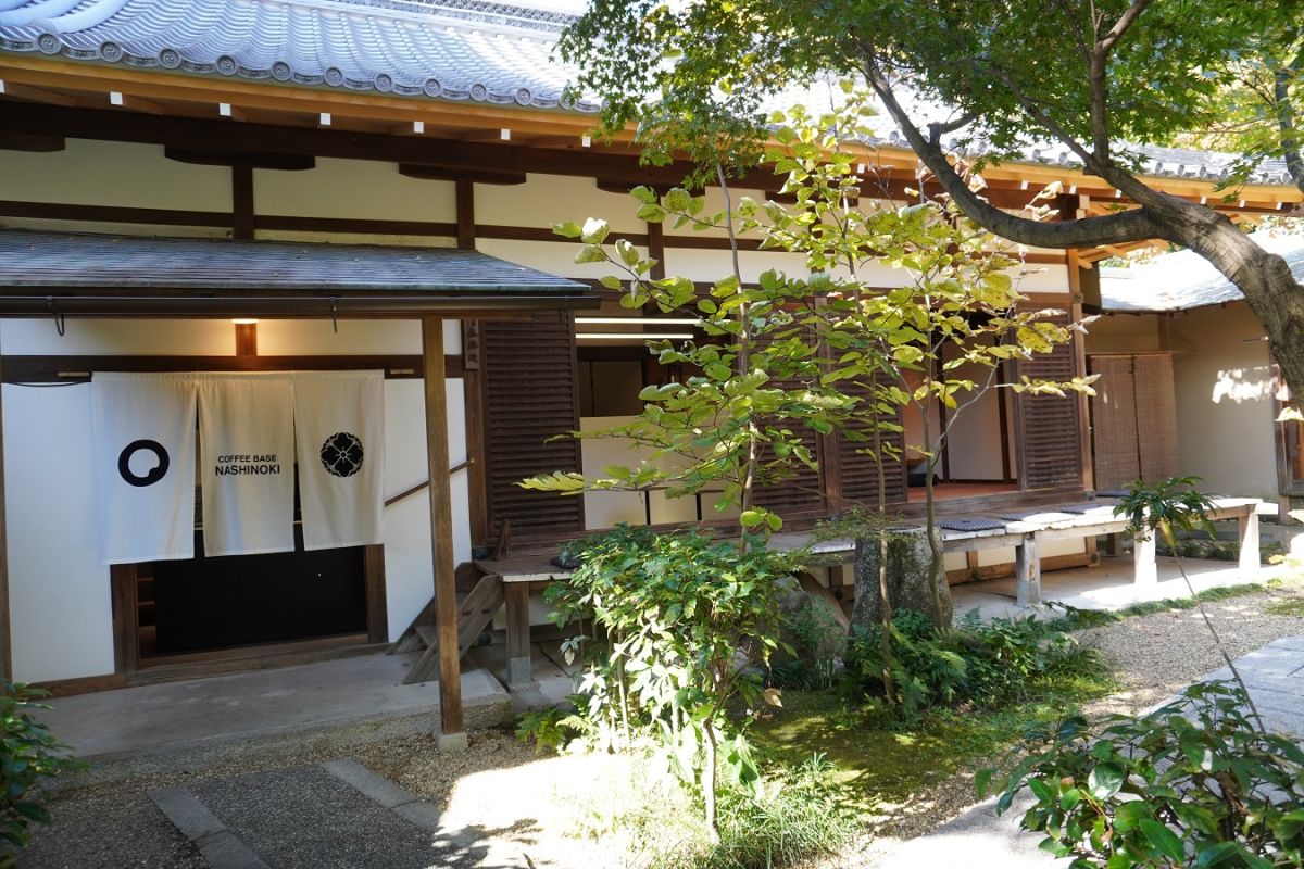 「Coffee Base NASHINOKI」は、京都御苑散策、梨木神社参拝のあとで、ぜひ立ち寄りたい素敵スポット。雅な気分で、おいしいコーヒータイムを過ごせますよ。
