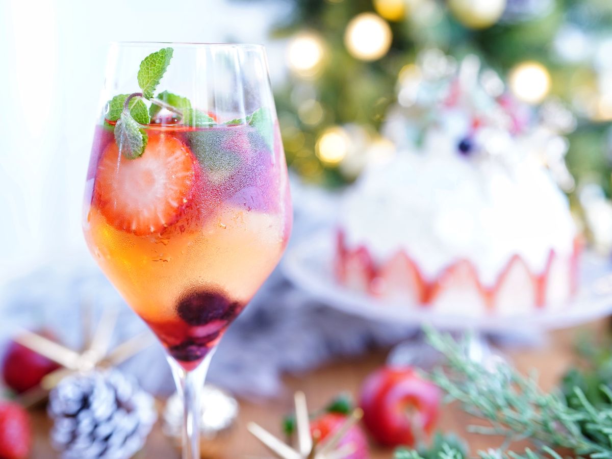 白ワインやスパークリングワインに、デコレーションで残ったいちごと冷凍ベリーを入れると、ほんのりピンクになって、いちごの甘さや酸味も加わり、奥深い味わいに。