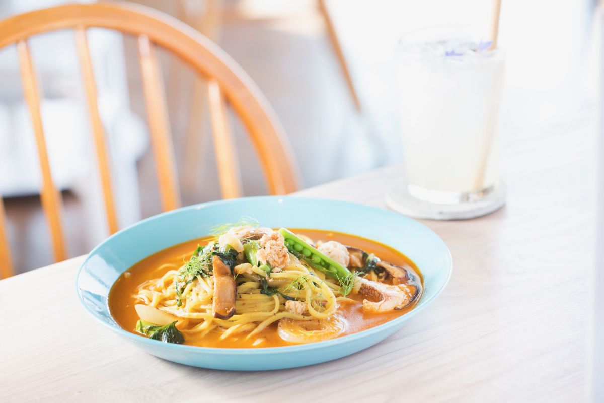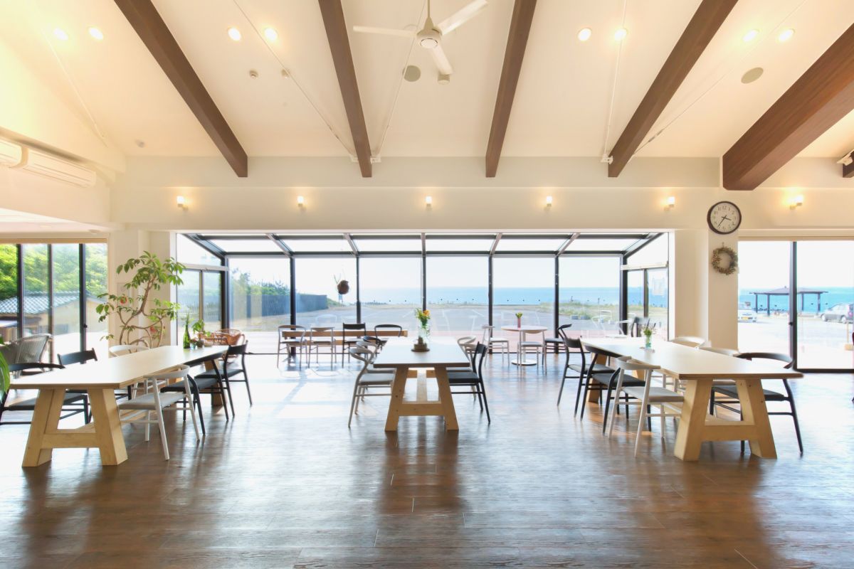 同じく「安宅の関 こまつ勧進帳の里」内にある「ATAKA CAFE(あたか かふぇ)」は、ガラス張りの店内から目の前に広がる日本海の景色が一望できます。季節ごとの旬の石川県産食材を使ったパスタやドリンクを楽しみながら、往時に思いを馳せてみてはいかがでしょうか。