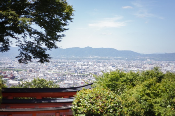 伏見稲荷大社を参拝するならぜひチャレンジしてほしいのが、「お山巡り」。奥社奉拝所から稲荷山山頂を通って巡拝するコースで、道中には新池のほとりに位置する熊鷹社や眼病平癒のご利益があるという眼力社など、多数の社が点在するパワースポットです。途中、四ツ辻とよばれる場所からは京都市南部の街並みを一望でき、開放感も味わえます。ただし、急な山道となっているので、動きやすい服装や靴で出かけてください。