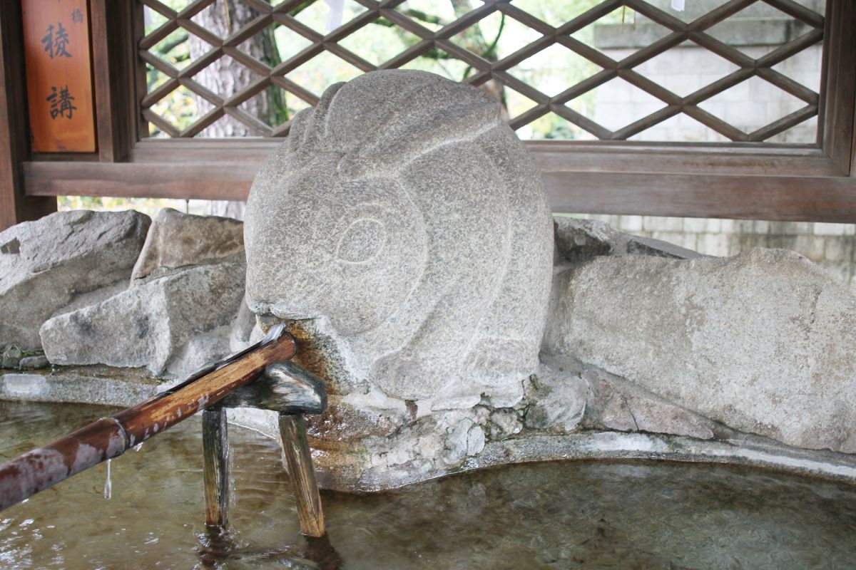 反橋を渡ると、左手に手水舎があります。住吉大社の手水の口はウサギ。なぜ、ウサギなのかというと、住吉大社の鎮座が辛卯年卯月卯日(卯=兎)にちなんで、ウサギは住吉大社の神使とされているからなんです。