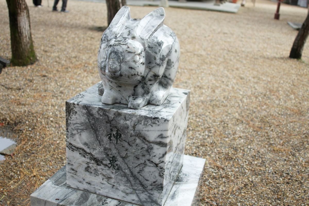 第四本宮前にある「住吉神兎(すみよしうさぎ)」は、「なでうさぎ」ともよばれ、撫でて無病息災を祈願します。