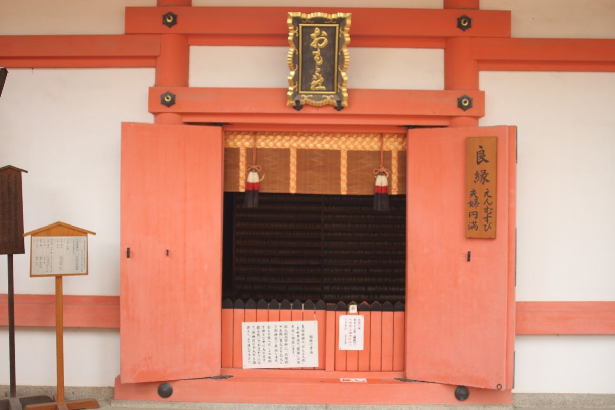 「侍者社(おもとしゃ)」は田裳見宿禰(たもみのすくね)と、市姫命(いちひめのみこと)をお祀りしている神社で、縁結びのご利益があるといわれています。