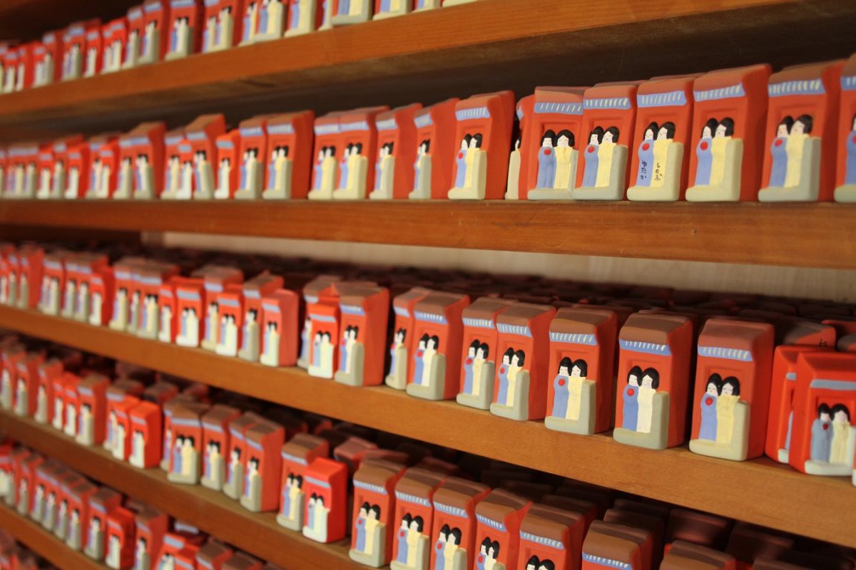 中には参拝者が奉納した授与品がずらりと並んでいます。「侍者人形」は良縁成就のご利益があるほか、「裸雛」は夫婦円満のご利益があるそうなので、カップルや夫婦で訪れるのもおすすめです。