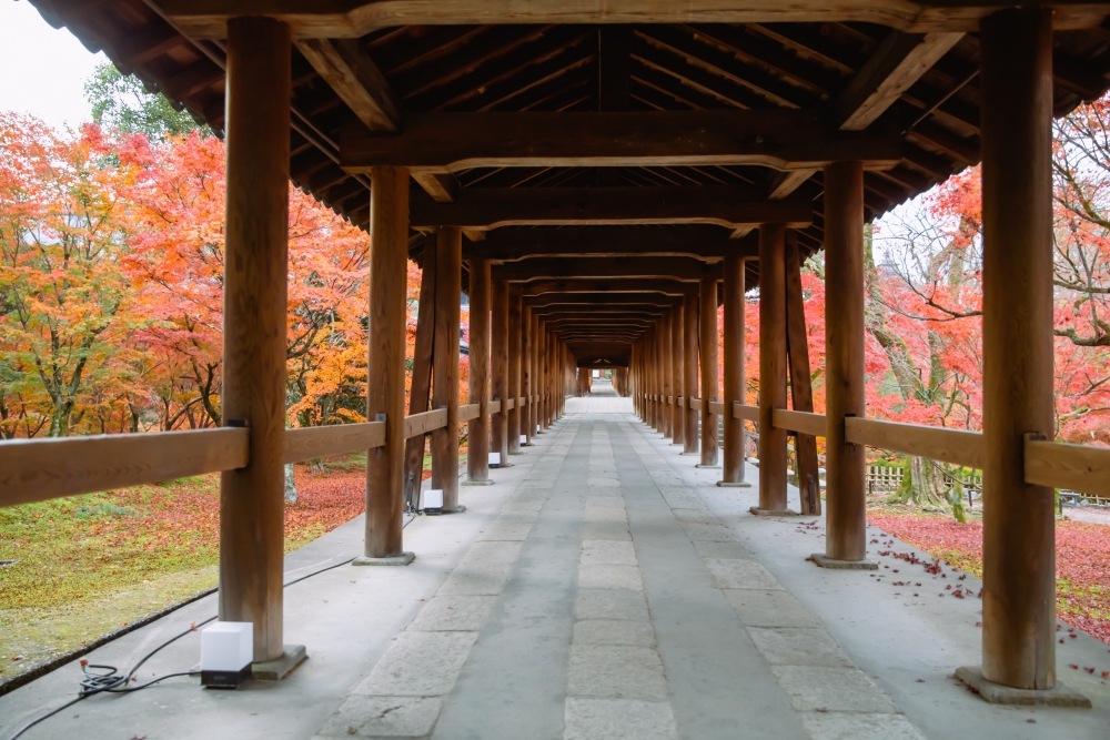 「洗玉澗(せんぎょくかん)」とよばれる渓谷を渡る労苦から修行僧を救うために架けられた橋は、全長27m、幅2.7mあり、周辺には2000本以上ものカエデが茂り、その赤く染まる様はまさに京都の秋を象徴する美しさです。