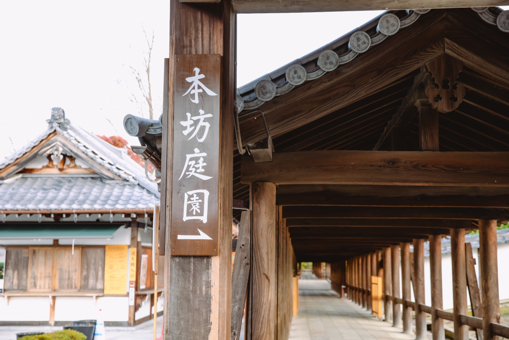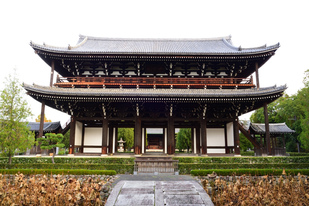 本堂から目と鼻の先で一際存在感を放っているのが、国宝指定の三門。大仏様、禅宗様、和様の3つの異なる建築様式を用い、禅宗寺院としては日本最古、最大の規模を誇ります。高さ約22mの楼上には宝冠釈迦如来像と十六羅漢像を安置。明兆とその弟子による極彩画が描かれ、荘厳な空間が広がります(特別公開時のみ拝観可能)。