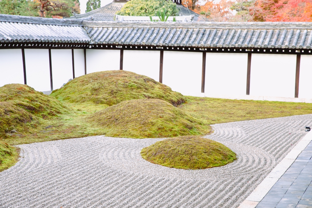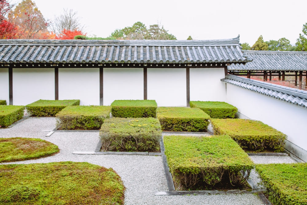 東福寺の方丈には、建物の東西南北に四つの庭が配され「八相の庭」と称されています。八相の庭は、作庭家・重森美玲によって昭和14年(1939)に作庭されたもので、東西南北にそれぞれ趣が異なる設計でありながら、全体のストーリーがつながる構成となっているのが特徴です。