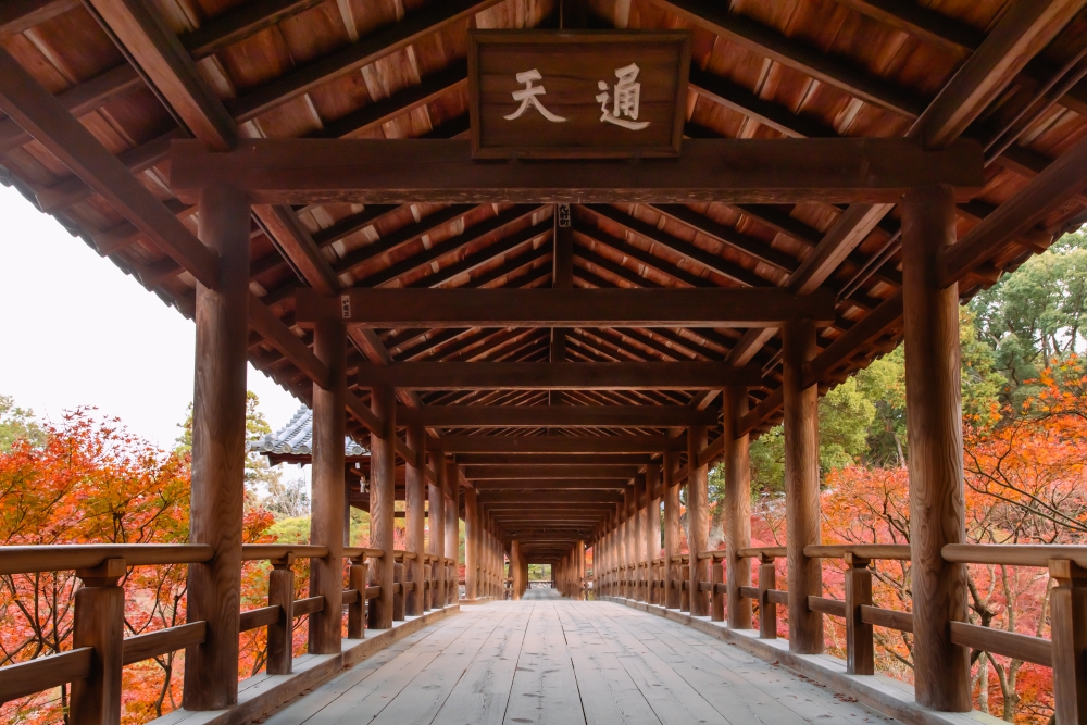 方丈と開山堂の間に架かる通天橋は、京都を代表する紅葉の名所として毎年多くの人が訪れています。
