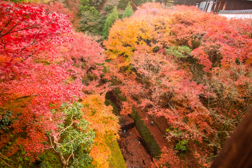 東福寺は広大な寺域に、三門や本堂、方丈、庫裏などで構成された主要な伽藍を中心に25の塔頭寺院があります。また、主要な伽藍の北には「洗玉澗(せんぎょくかん)」とよばれる渓谷があり、臥雲橋、通天橋、偃月橋という3本の橋が架かっています。