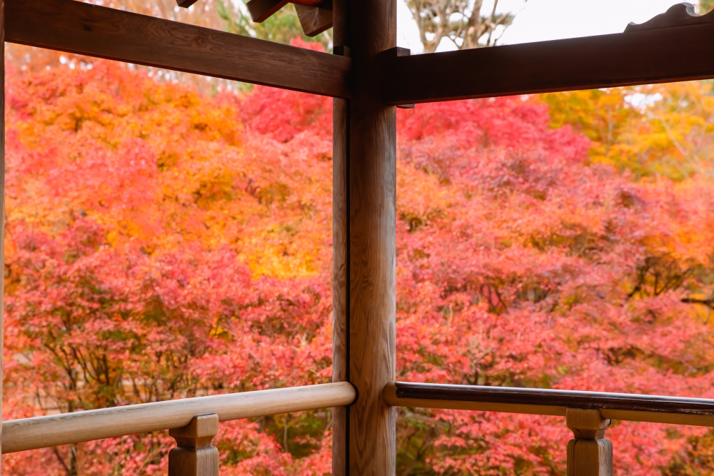 京都に限らず日本の紅葉といえばイロハモミジ(タカオカエデ)が主流ですが、通天橋の辺りに広がるのは「トウカエデ」とよばれる品種で、開山の円爾が宋から持ち帰ったと伝わっています。