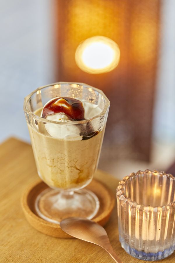 新作デザートは、黒糖のババロア。コクのある黒糖ババロアに生クリームと黒蜜をかけて、冷たい和菓子のような雰囲気も楽しめます。