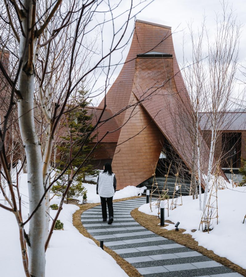 2022年1月にオープンした 「界 ポロト」は、世界的な建築家である中村拓志さんが建築した温泉宿。ブロンズ素材を使用した、三角屋根の温泉がポロト湖の前に並びます。ホテルの前には「ウポポイ民族共生象徴空間」があるなど、観光地へも簡単に足を運べるアクセス事情。 また、北海道・白老は植物性ミネラルを豊富に含む珍しいモール温泉が有名で、茶色く色づいた湯でお肌がツルツルに!この温泉に入るだけでも価値がある良質な湯でした。部屋に付いている半露天のお風呂でも、モール温泉が楽しめるのはかなりうれしいポイントなのではないでしょうか?