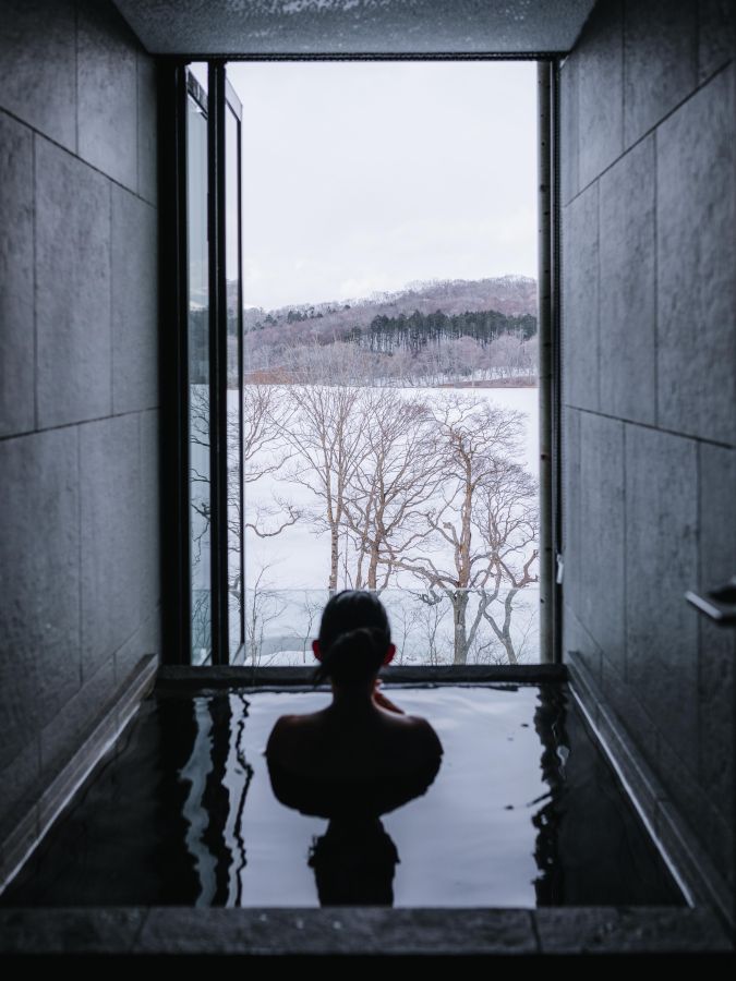 前述したとんがり屋根の湯小屋にある「△湯」からは、真っ白なポロト湖を眺めることができて、温泉でくつろぎながら、北海道ならではの広大な湖の雪景色を楽しめちゃいます!