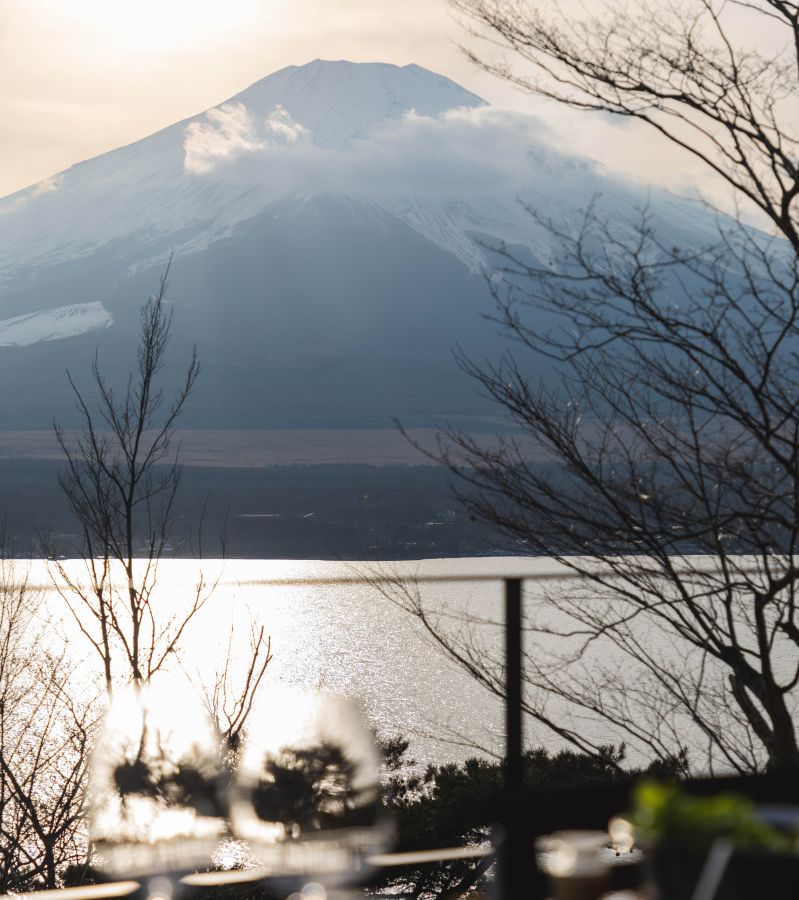 湖に面した自慢のウッドデッキからは、山中湖と富士山を一望できる最高のロケーション。季節によっては、雪化粧をした白い富士山を、別荘にいながら満喫できちゃいます♪