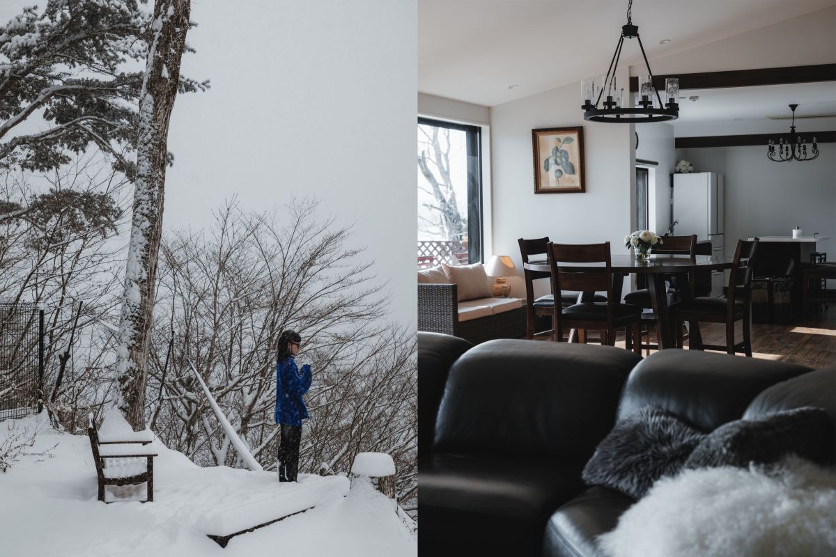 テラス付きなので、遠出をしなくても、雪に包まれた銀世界を楽しむことができます。寒いのが苦手な人は、ラグジュアリーながらもあたたかみのあるリビングで、ぬくぬくしながら雪を楽しむのもおすすめです。