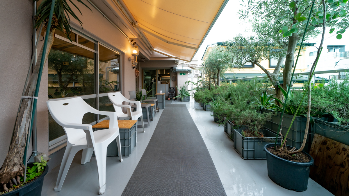 2022年3月には宿泊施設「黄金湯 お宿」、9月にはラウンジスペース「コガネキッチン」がオープン。食事だけの利用もOKとのことで、さっそく足を運んでみたところ……銭湯の2階部分が、下町らしさとリゾート感が絶妙に融合したテラスになっていました!