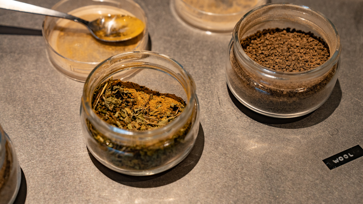 アッサムティーとミント、8種のスパイスをブレンドしている「リネン」600円は、アイスで楽しむことに。重厚感と柔らかさを兼ね備えているという「ウール」700円と見比べてみても、使用されている素材がまったく異なることがわかります。