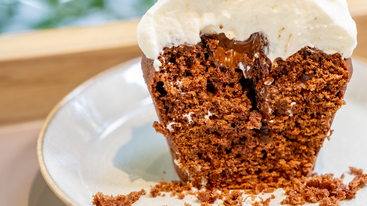 ほろほろと崩れるマフィン生地となめらかなクリームは相性抜群。甘酸っぱくてみずみずしいサワーチェリーだけでなく、中心部にはトロリと溶けたチョコレートが入っているなど、味わいのアクセントも利いていました。