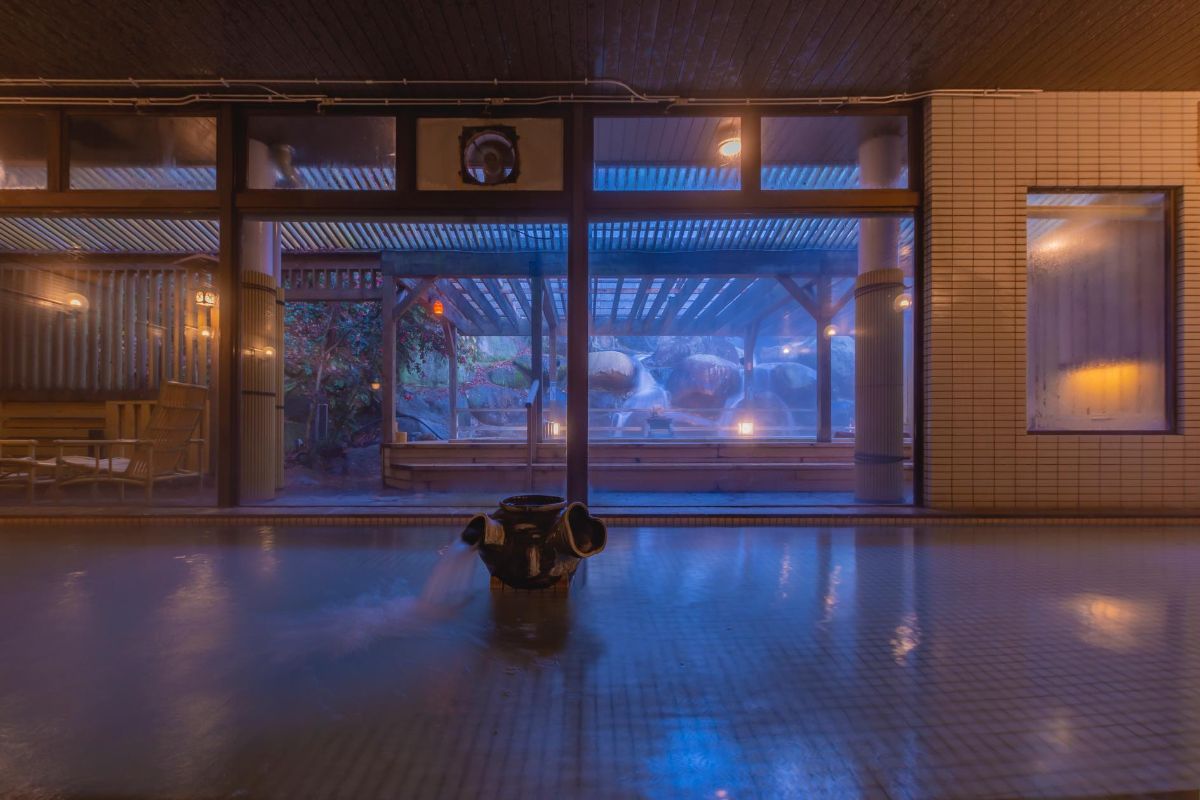 夕食後は、宿自慢の温泉へ。ナトリウムやカルシウムをたっぷりと含む美肌の湯に浸かると、旅の疲れも癒やされていきます。湯殿には益子で活動する著名な陶芸作家、藤原郁三氏の作品『邪鬼』や寝湯枕もあり、お湯に浸かりながら益子らしさを体感できます。館内には「森のエステ Fuwari」もあり、温泉×エステで癒やしの時間を過ごせ、心身ともにリラックスできます。