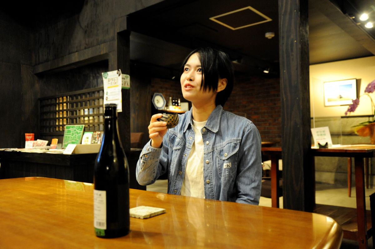 酒蔵見学後は古い蔵を利用したカフェ「湧」で、人気銘柄三種の試飲ができます。「燦爛」の純米大吟醸は、全国新酒鑑評会で現在8年連続金賞を受賞しているそうで、口に含むと白ワインのようなフルーティな香りに包まれ、しっかりとした旨味、すっきりとした飲み口に思わず笑顔がこぼれます。