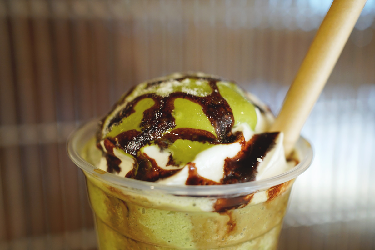 甘くデザート感覚で味わいたい方は、チョコレートソースを追加(無料)がおすすめ。コクのある甘さが加わって、抹茶玄米茶の風味も変わらずに楽しめます。