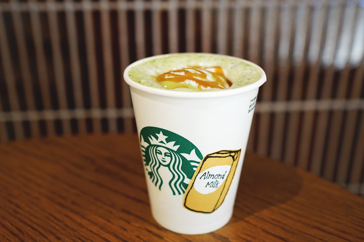今回試してみたのが、アーモンドミルクに変更(+55円)です。まろやかさ&香ばしさが増して、さらに深い味わいに! アーモンドミルク好きの一個人の感想ですが、抹茶玄米茶の香ばしさが引き立って、通常ミルクの2割増しでおいしく感じられました。アーモンドミルク好きなら、ぜひ試してみてください。
