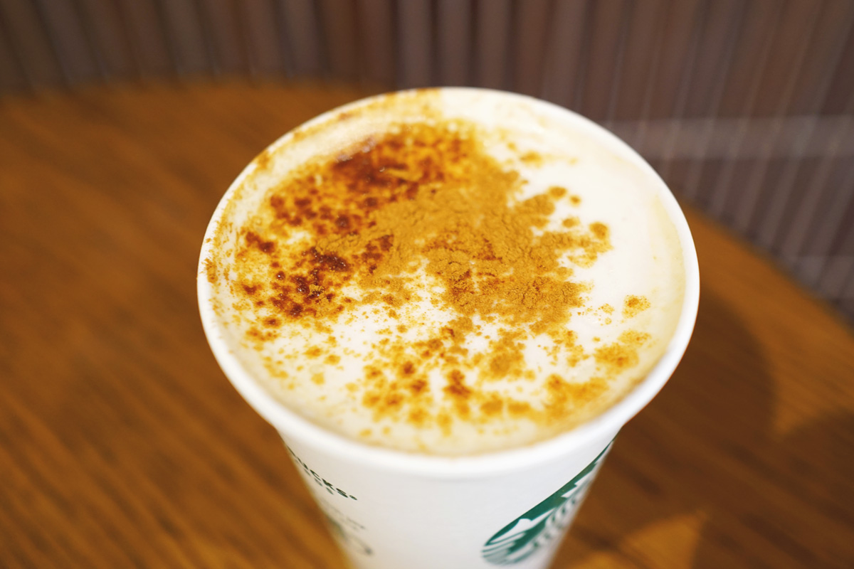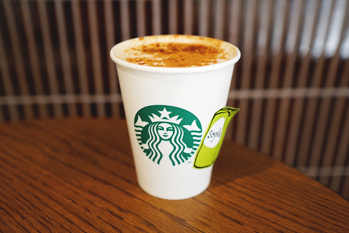 スターバックス公式のおすすめに従って、豆乳に変更(+55円)してみました。通常ミルクよりも、味にまろやかさが増して、スパイスも香り高く感じられます。ぜひお試しを。