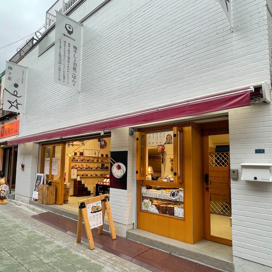 地下鉄浅草駅から徒歩3分ほど、梅干し&羽釜ごはんとおとも定食のお店「梅と星」は、観光客で賑わう仲見世通りの1本隣の通り沿いに位置しています。風情のある浅草の路地に立つ、スタイリッシュな店構えです。