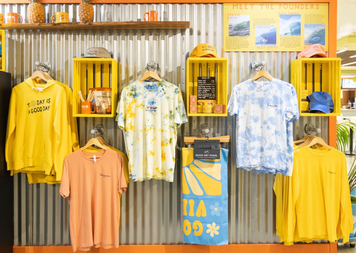 店内には「Tシャツ」$32~や「パーカー」$56、「キャップ」$22、「ビーチタオル」$52など、お店オリジナルウエアやグッズも豊富に揃っています。ウエアはハワイの日差しにもピッタリなビタミンカラーで、着心地も抜群。ハワイ旅行の記念にぜひゲットしてはいかが?