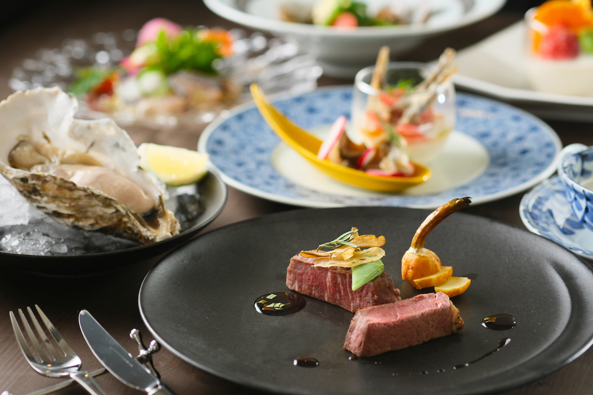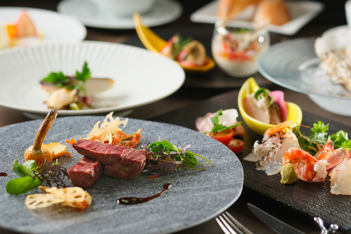 季節の鮮魚を使ったカルパッチョや、肉料理、ポタージュをはじめとする彩り豊かなコースが贅沢に楽しめる「HOTEL BEACON ONOMICHI」のディナー。尾道旅行の思い出に、ぜひ味わってみてください。