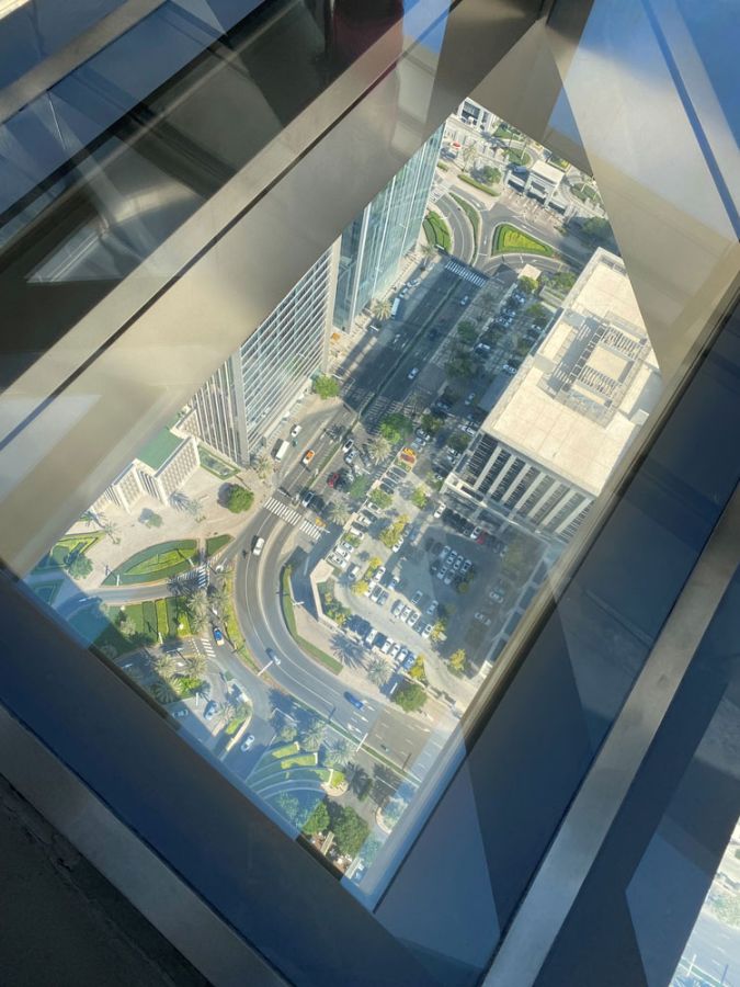 全面ガラス張りの床はちょっと怖いのですが、下を走る車もはっきり見えてまるでミニチュアのように感じます。