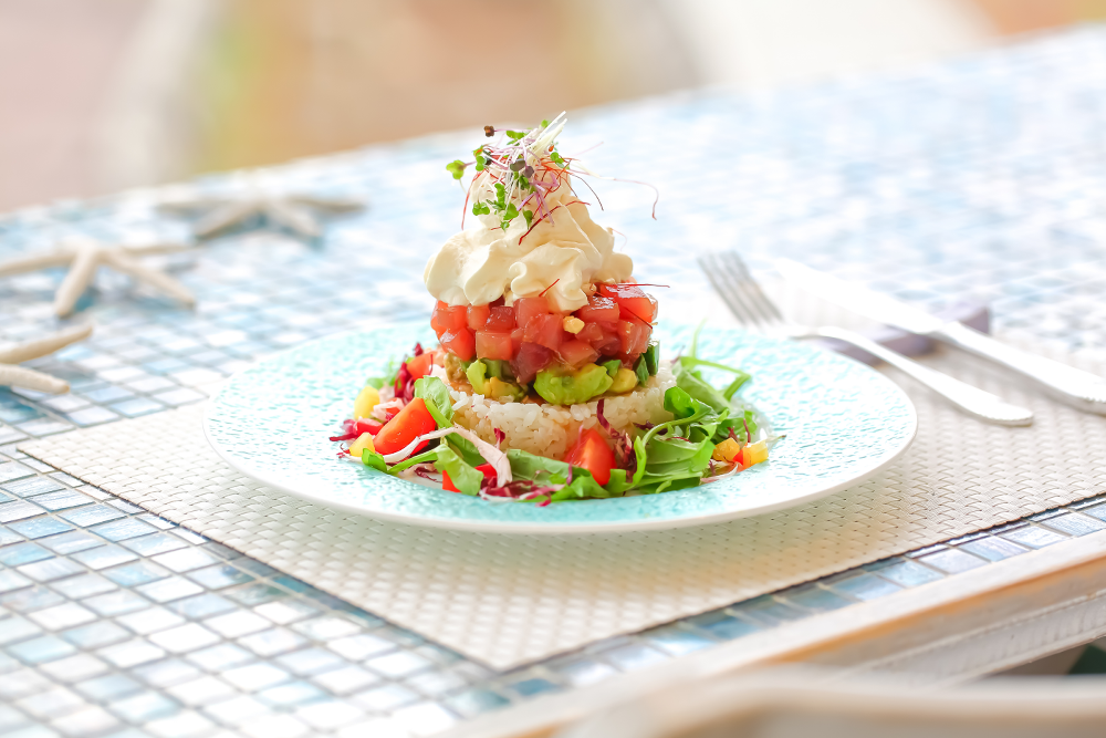 びわ湖畔のハーバーレストラン。フランスの星付きレストランで腕を磨いたシェフが、無農薬や減農薬の野菜、近江牛、湖魚など地元の素材を生かして作る料理のイチオシは、「マグロとアボカド~わさび醤油のエスプーマ仕立て~」2145円。フルーツたっぷりのパンケーキも人気です。