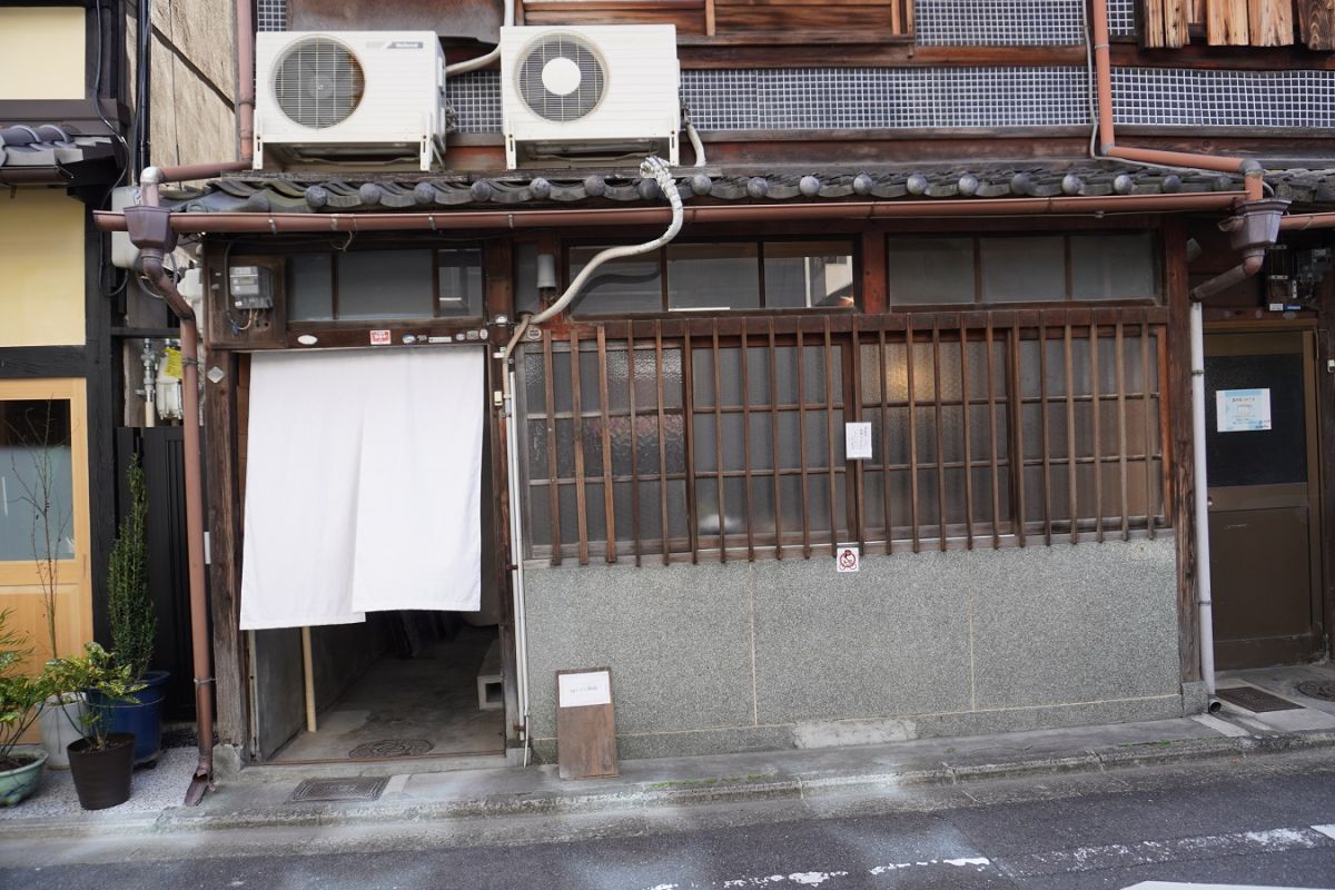 目印は、古い町家の玄関にかかった白いのれんと、小さな手書きの看板のみ。素朴なたたずまいです。