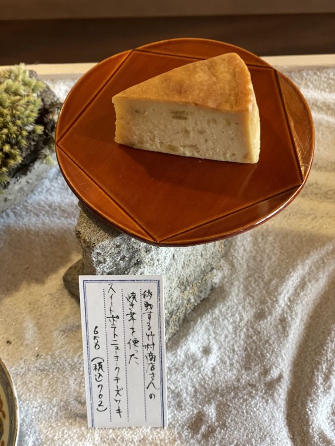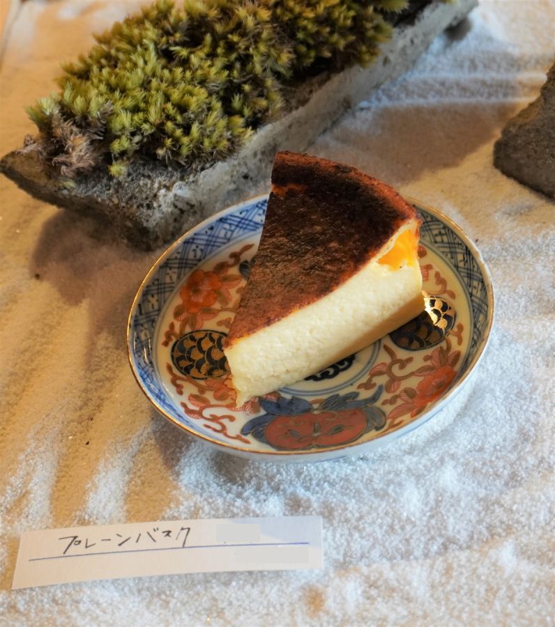 枯山水の上に配された「究極のチーズケーキ」