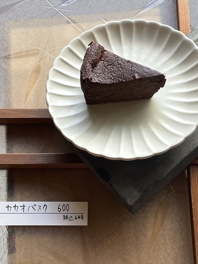 「カカオバスク」648円は、100%カカオをふんだんに使って贅沢に仕上げた逸品。カカオとチーズの酸味が絶妙にマッチして、ほかではなかなか出合えない濃厚なおいしさです。