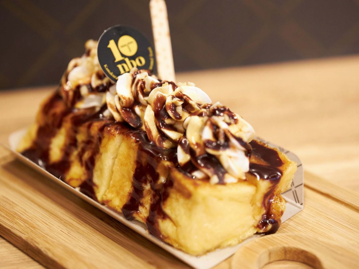 「10nbo」の冷やしフレンチトーストのなかでスタンダートタイプとされるのが、チョコレートソースをかけたこの「ベイクドフレンチ」です。