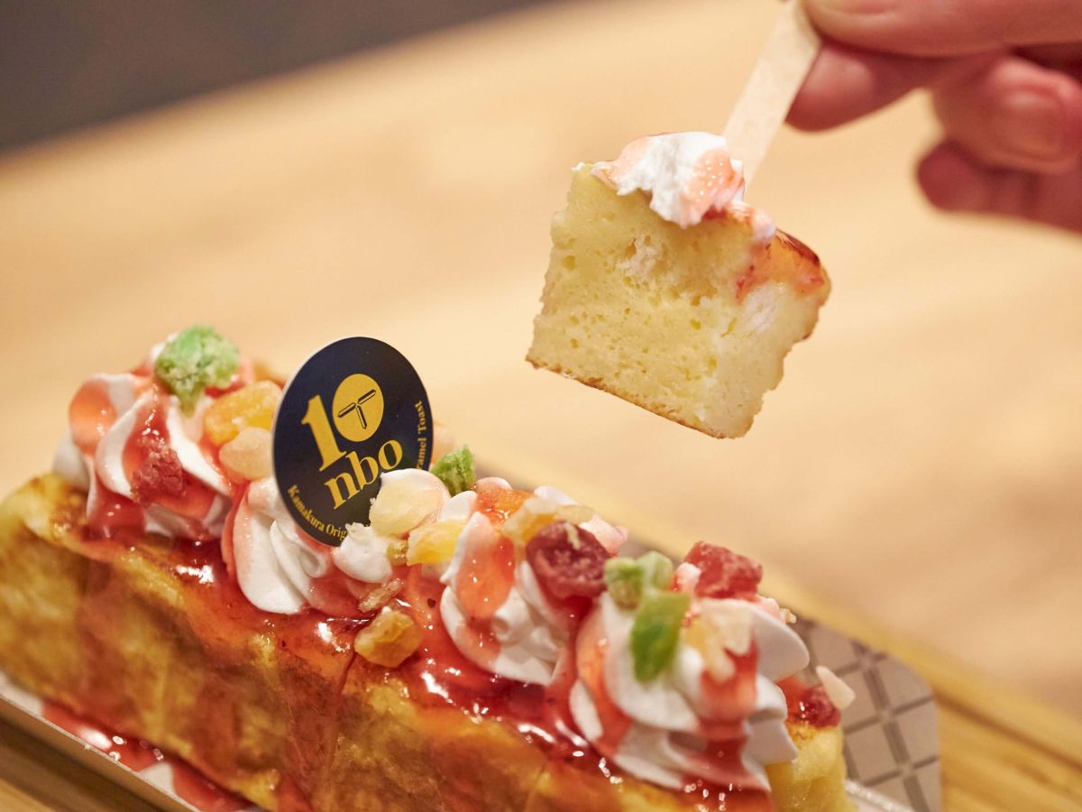 鎌倉大仏で知られる高徳院と江ノ電・長谷駅の間に、2022年4月にオープンしたパンスイーツカフェ「10nbo(トンボ)」。看板メニューの「ベイクドフレンチ」は、こだわりの純生食パンで作るしっとり&もっちもち生地がポイントの“冷たいフレンチトースト”です。一度食べれば虜になること必至!フレンチトーストの新境地をぜひ試してみて♪