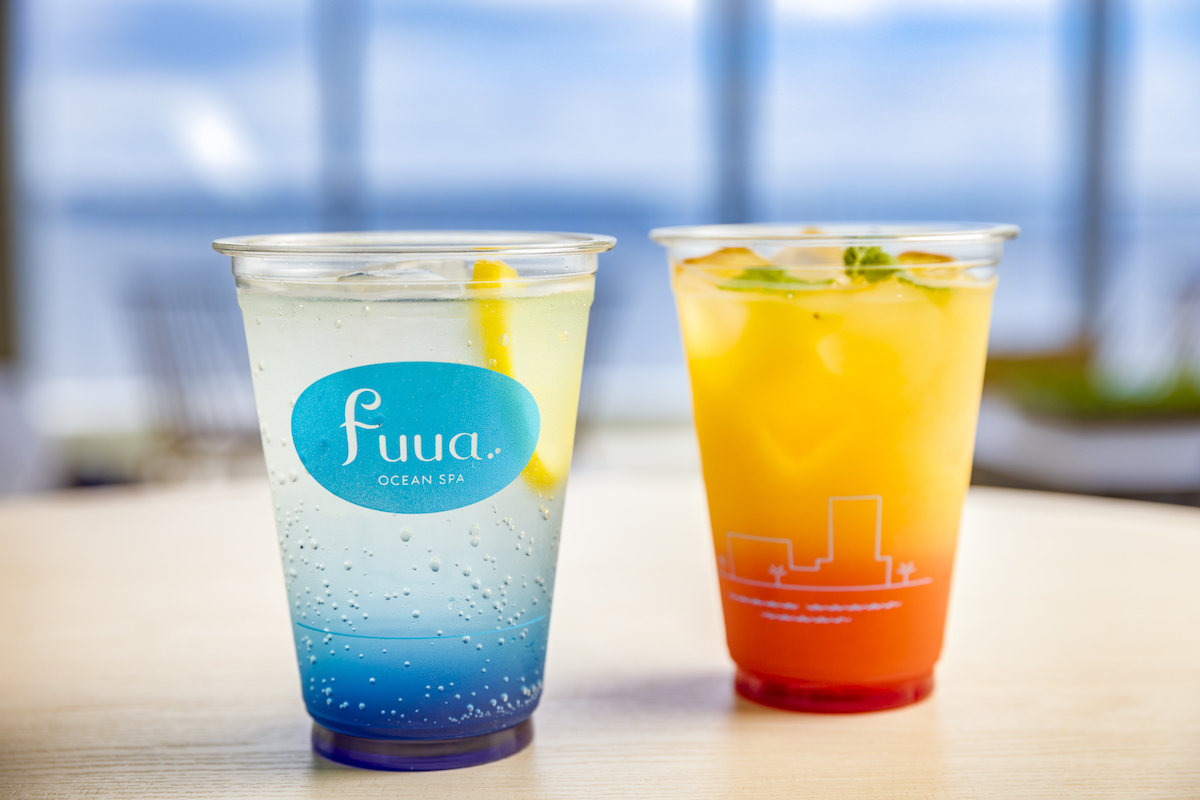 「Fuua Café (ふーあ かふぇ)」では、海を眺めながら、多彩なドリンクや軽食が味わえます。熱海海上花火大会開催時には、露天風呂や休憩スペースから眺める大迫力の花火も、お楽しみのひとつ。