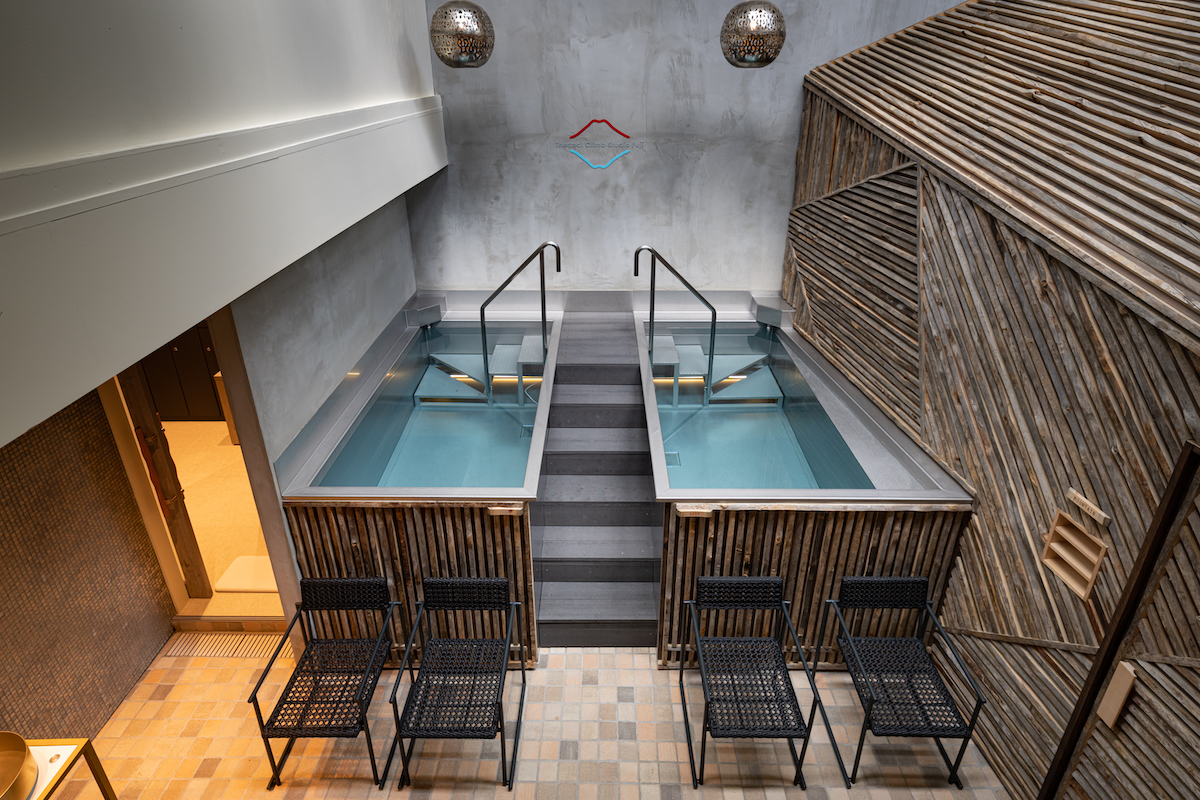 ドライサウナの温度が約90℃なのに対し、こちらのフィンランド式サウナは50℃と低めの温度設定。熱したサウナストーンに水をかけ蒸気を発生させる“ロウリュ”を好きなタイミングで行うことができ、自分で心地よい温度・湿度に調整できるのが魅力です。