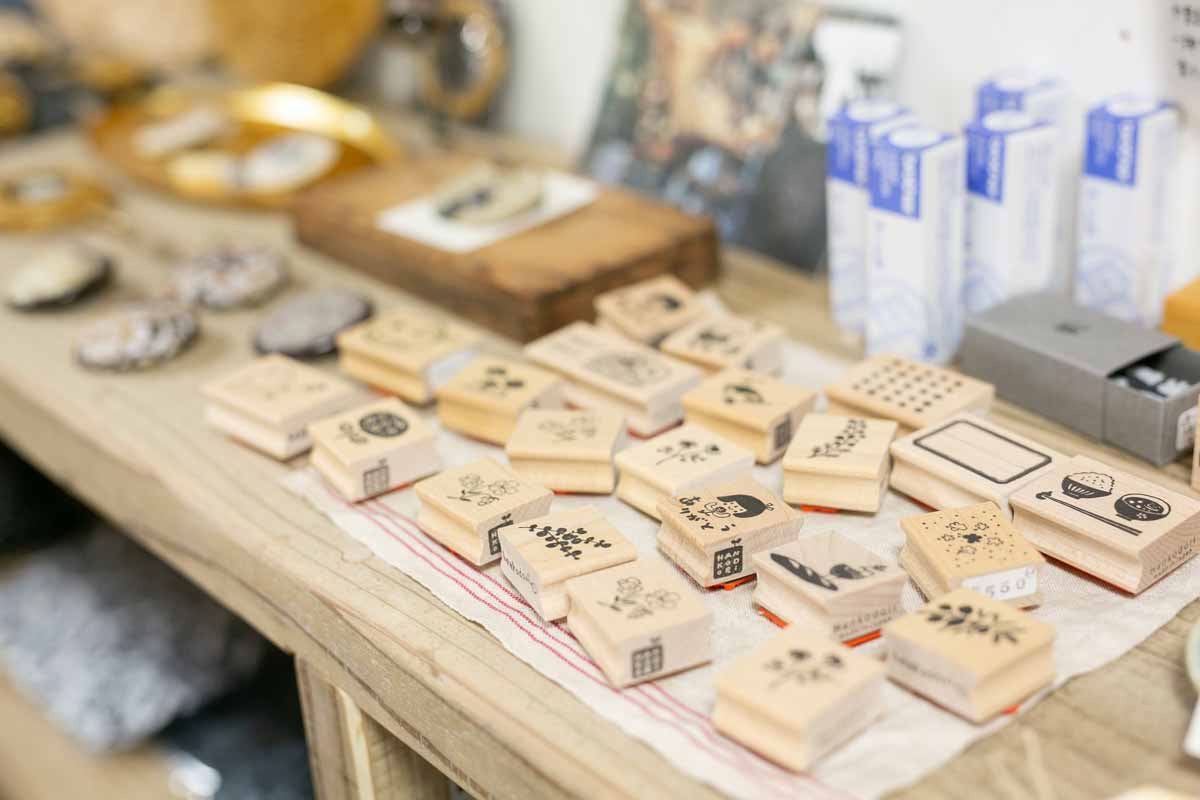 桟橋から8分ほど町屋通り方面へ歩くと住居が立ち並ぶ閑静なエリアに入ります。その一角にあるのが「TRUNK」。2017年に宮島に移転しオープンした雑貨店で、バッグ、アクセサリー、スタンプ、時計などを制作する作家30〜40人の作品を展示販売しています。