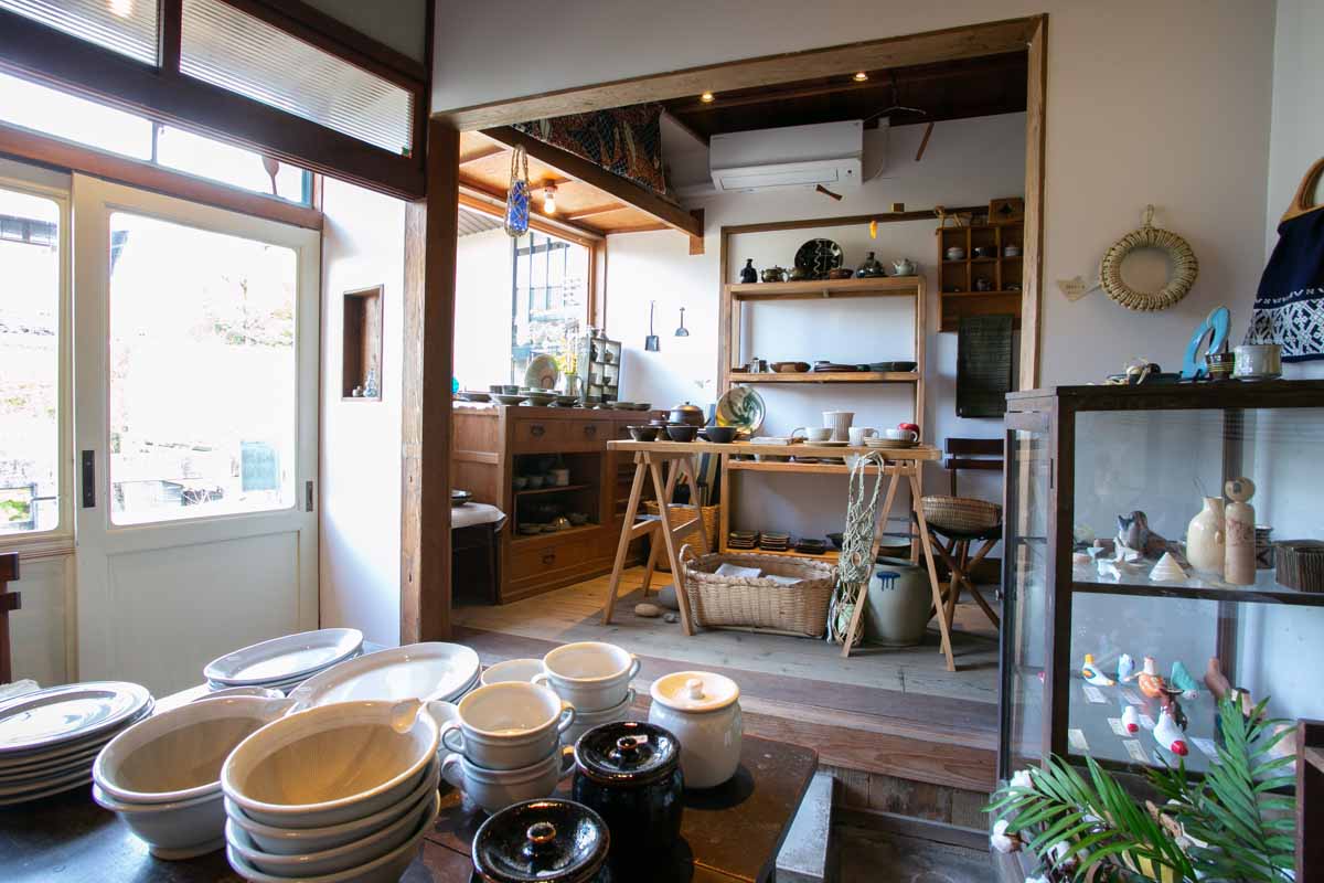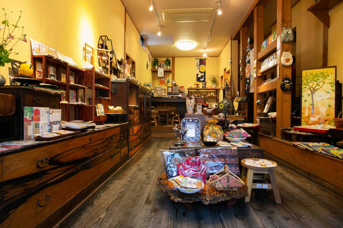 店に並ぶ器や日用品、工藝品は店主が自ら足を運んで買い付けたもので主に中国地方ものをセレクト。宮島の工芸品である宮島張り子や杓子もあります。