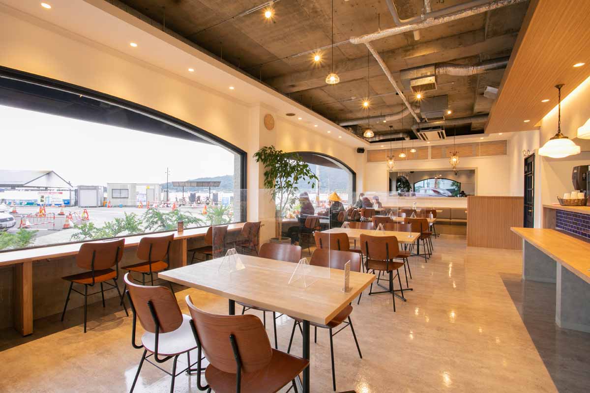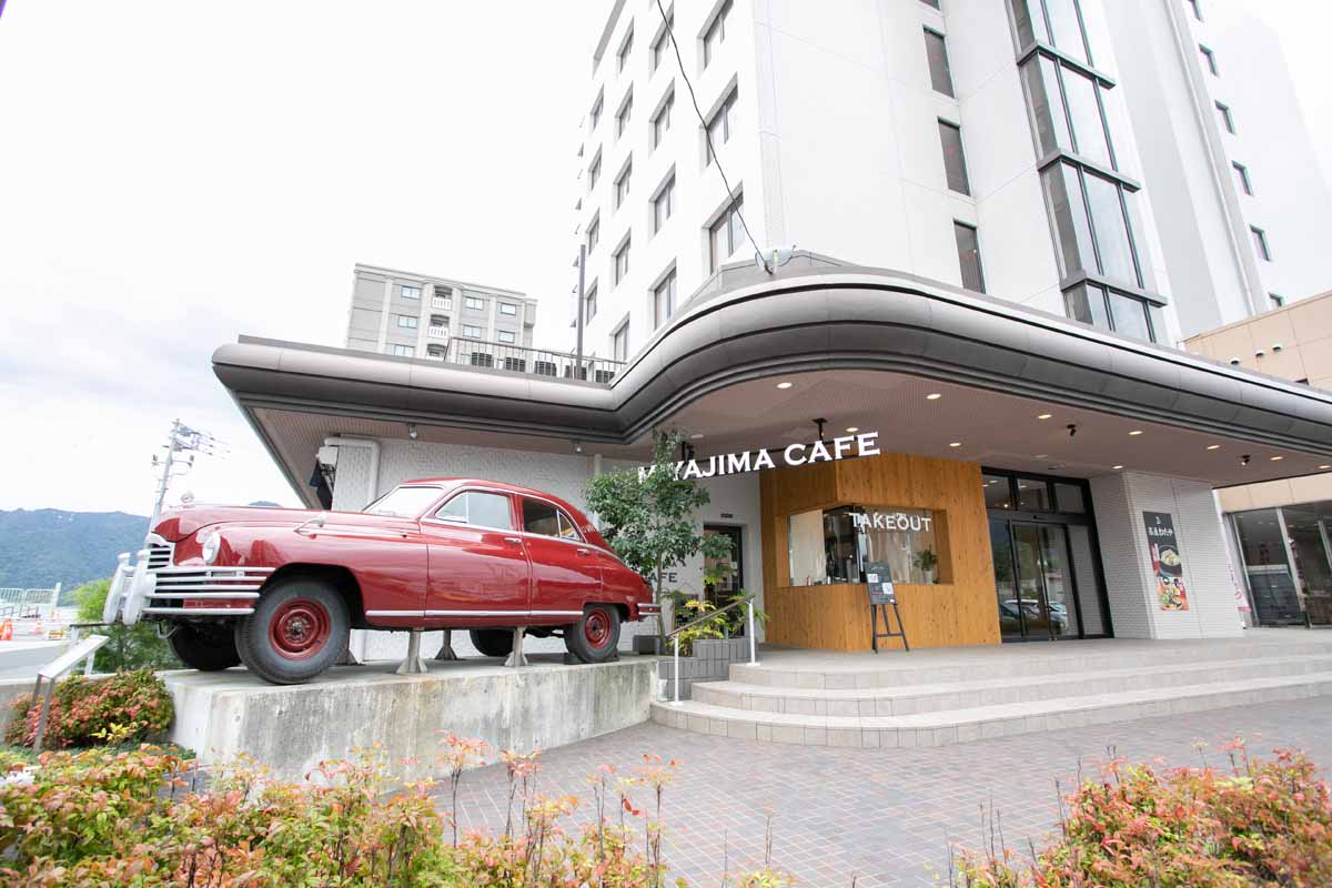 2022年3月に広電宮島口駅からすぐの場所に位置する「宮島コーラルホテル」の1階にオープンした「MIYAJIMA CAFE」。看板商品は広島県産の牡蠣を使った「宮島牡蠣バーガー」とバリスタがエスプレッソマシンで淹れるコーヒー各種です。瀬戸内海が一望できる窓際の席でのんびり過ごすのがおすすめ!バーガーなど一部のメニューはテイクアウトもOK。店前の赤いクラシックカーを目印に訪れましょう。