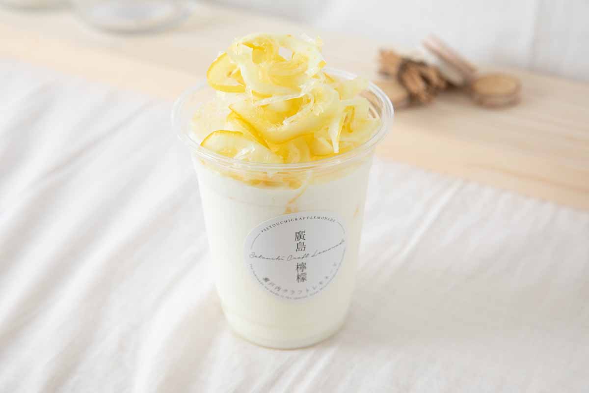 「食べるレモネード」をコンセプトに、そのまま食べてもおいしいクラフトレモネードを製造・販売する「瀬戸内クラフトレモネード」。レモンと厳選された砂糖5種を使い、こだわり抜いて作られたレモネードはその場でドリンクとして楽しめるほか、お家で楽しめる瓶入りのものもあります。レモンは広島県大崎上島から旬の時期に仕入れています。
