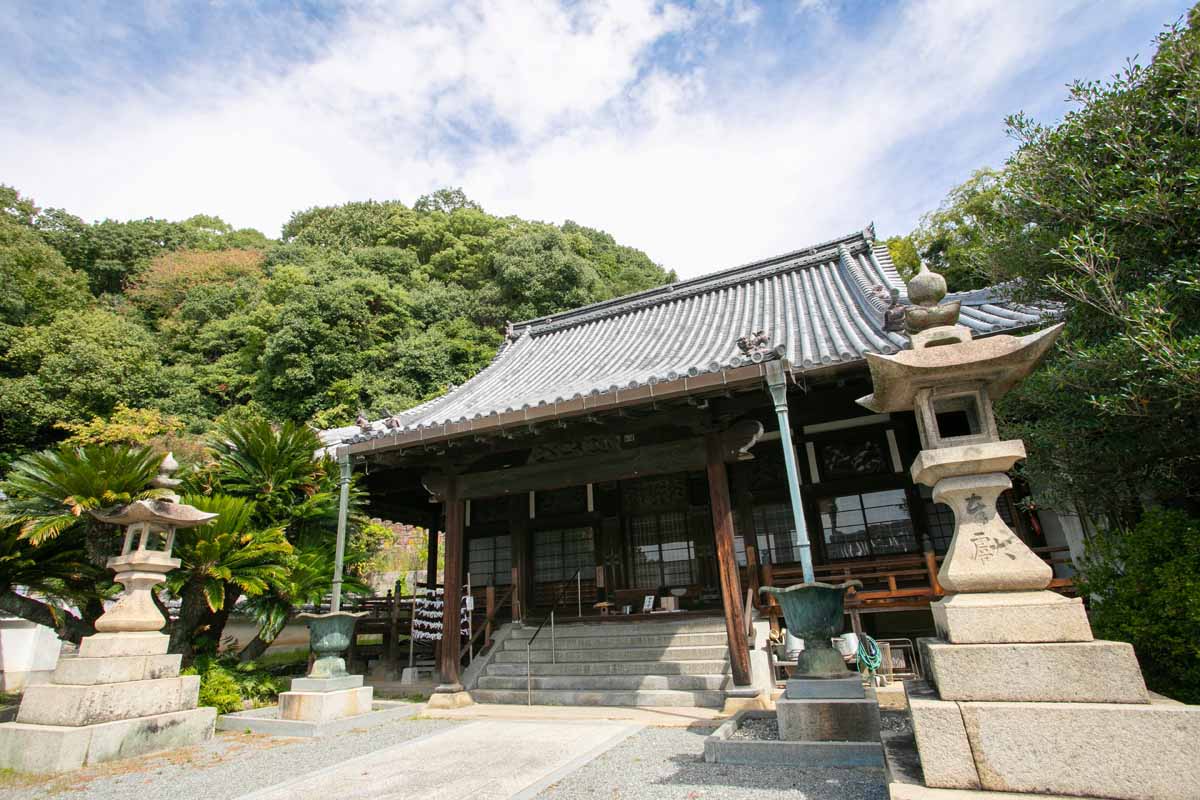 階段を登って正面にみえるのが西方寺の本堂。慶長8年(1603)に禅寺だった妙法寺の跡地であるこの地へ移り、浄土宗に改宗しました。本堂は元禄15年(1702)に再建されたものです。