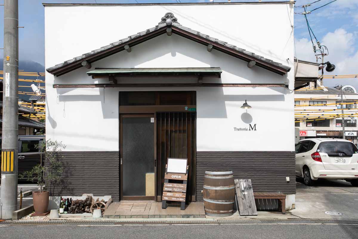 ランチタイムは地元の食材をふんだんに使った料理が楽しめると人気のレストランへ。西方寺からは歩いて12分ほど。「Trattoria M(トラットリアエム)」はオーナーシェフの室岡さんが生産者を訪ね、よい素材を厳選しています。「生産者の人柄までお皿の上で伝えたい」と室岡さん。子ども連れでも気兼ねなく入店できるカジュアルな雰囲気も人気の理由の一つです。